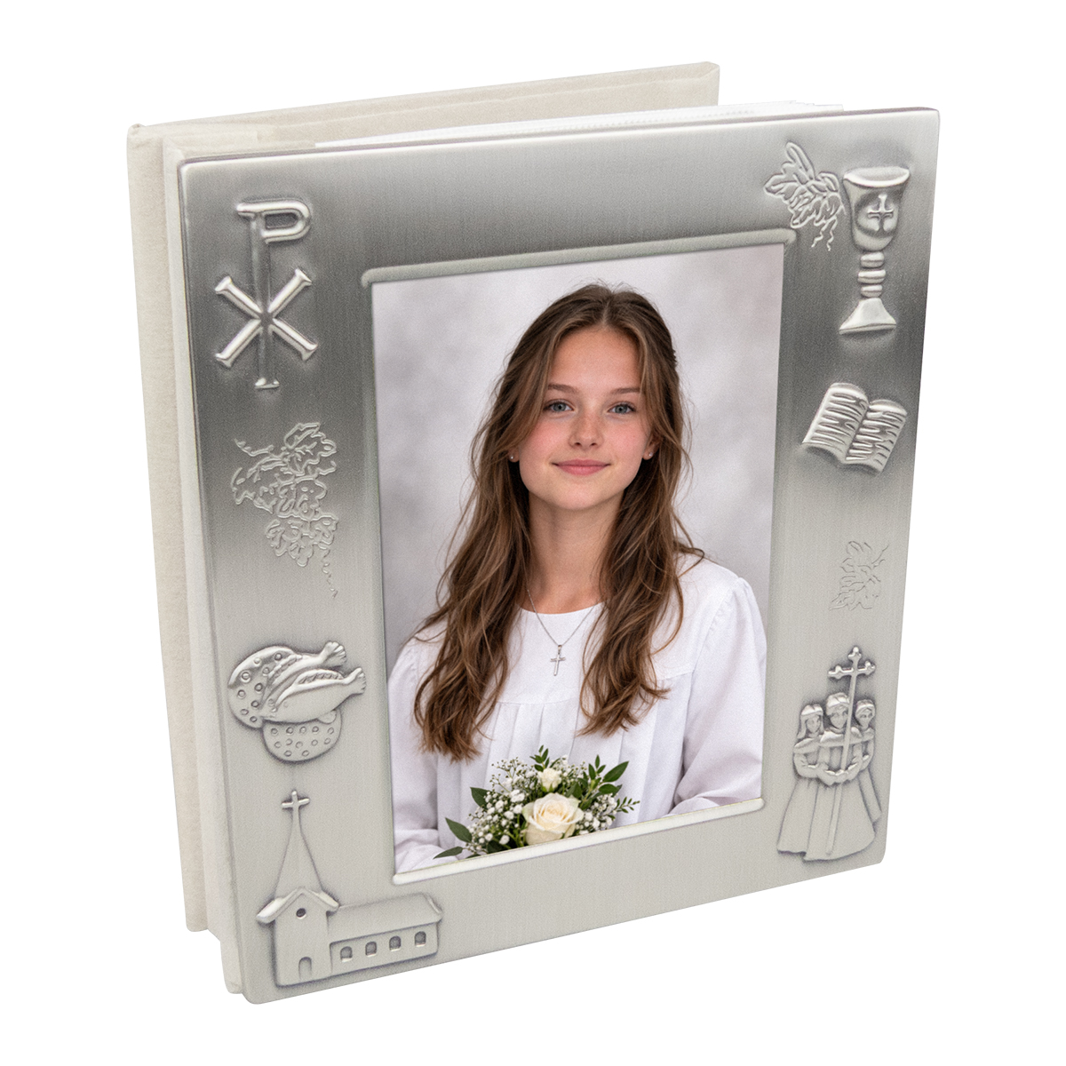 Ett stilrent och tidlöst fotoalbum för att bevara minnen från konfirmationen. Albumet har ett klassiskt konfirmationsmotiv på framsidan och rymmer bilder från dagen som betyder något, nu och långt fram.