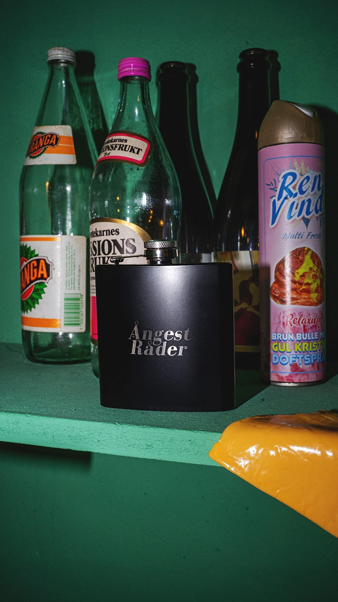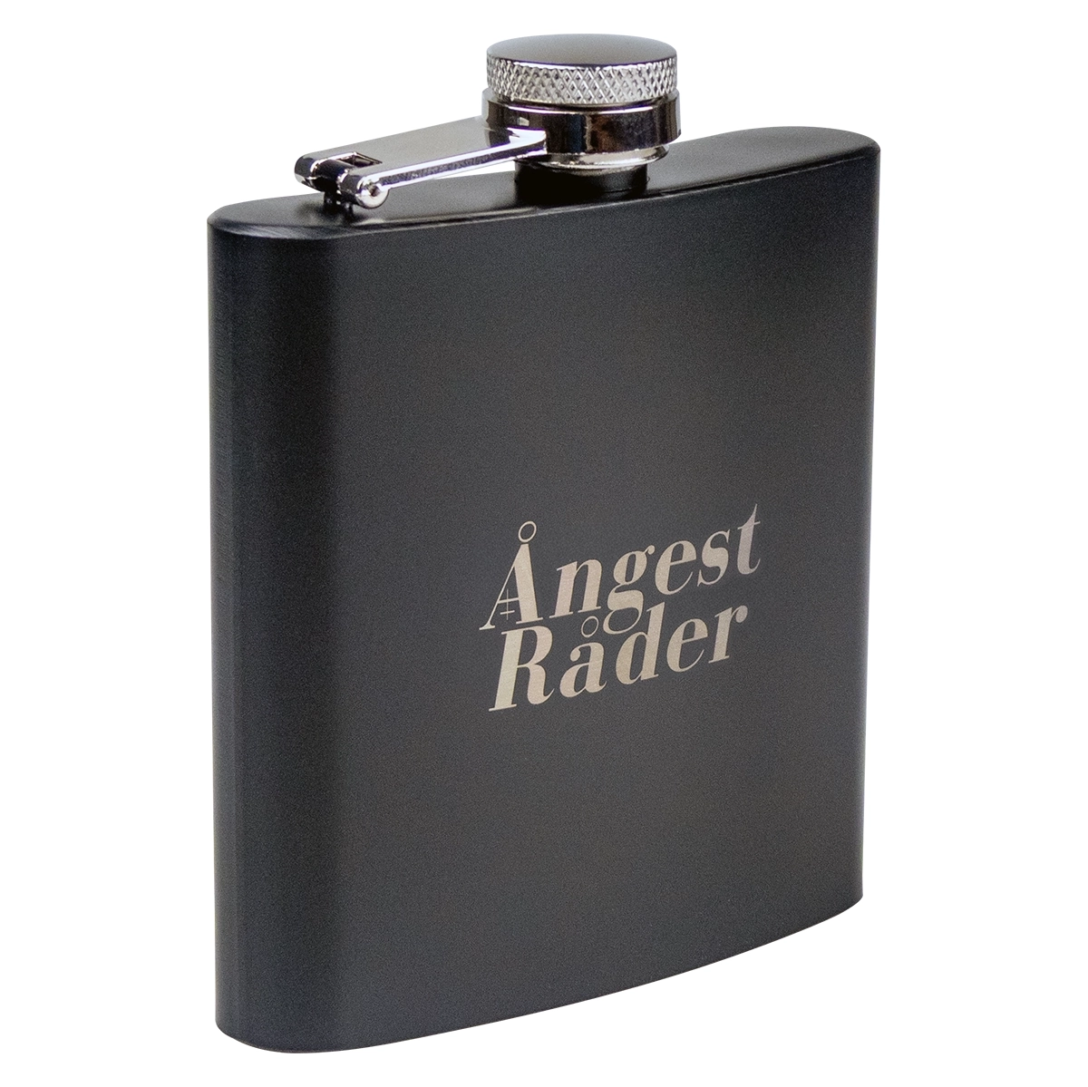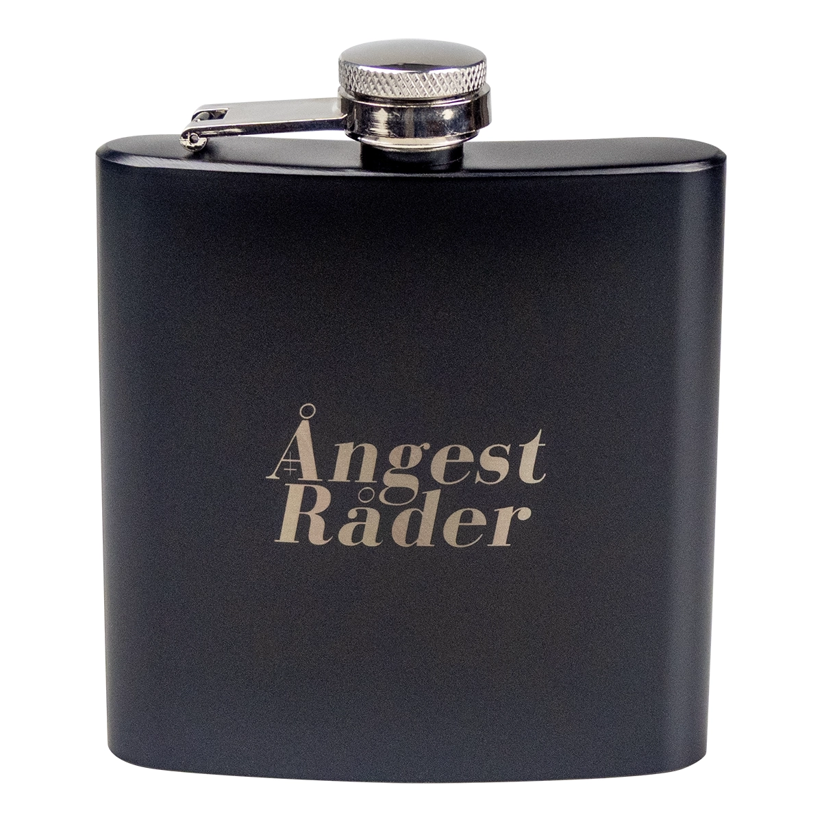 Den här fickpluntan konstaterar sakligt att ångest råder. Alltid. Oavsett dag, väder eller livsval. Matt svart metall möter lasergraverad realism, levererad utan tröst men med skruvkork.