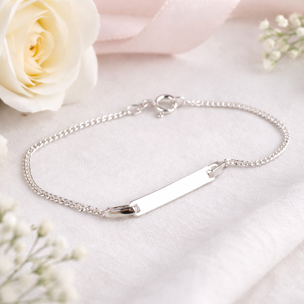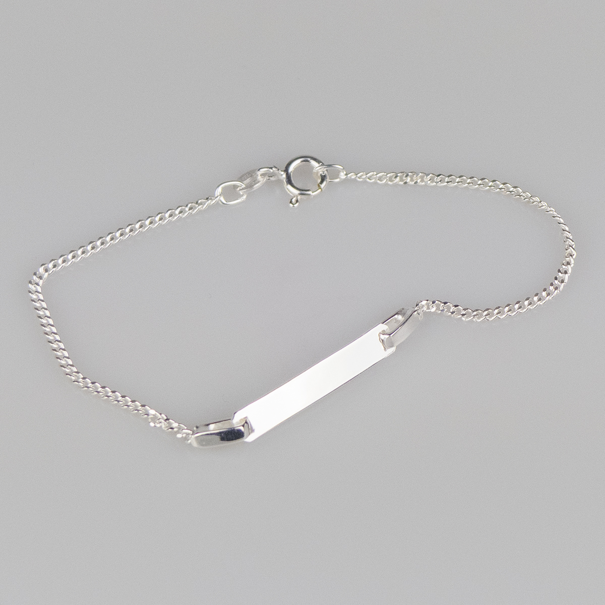 Ett klassiskt och tidlöst armband i äkta silver med slitstark pansarlänk och slät bricka som kan graveras med namn utan extra kostnad. Den stilrena designen gör armbandet passande för både barn, ungdomar och vuxna. En personlig present som håller över tid och fungerar vid många tillfällen.