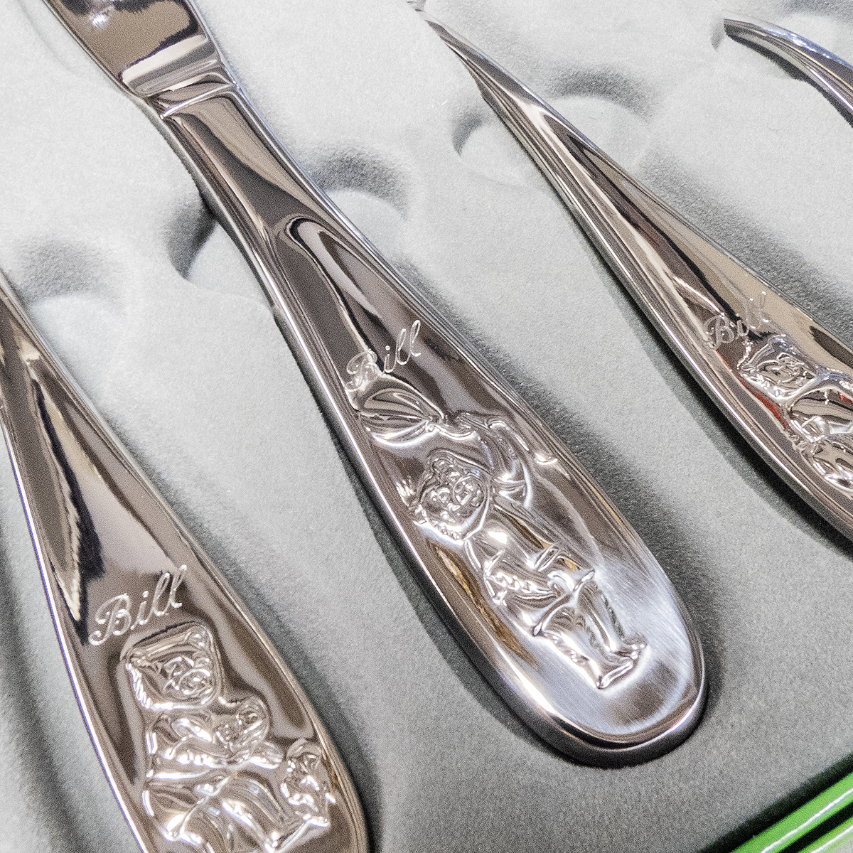 För att göra gåvan extra minnesvärd ingår gravyr av ett namn på samtliga delar av besticksetet. Detta personliga inslag gör att barnet alltid kommer att veta att detta set är speciellt tillverkat för just dem. Gravyren är noggrant utförd för att hålla sig vacker genom åren, vilket gör besticken till ett kärleksfullt minne som barnet kan bevara.