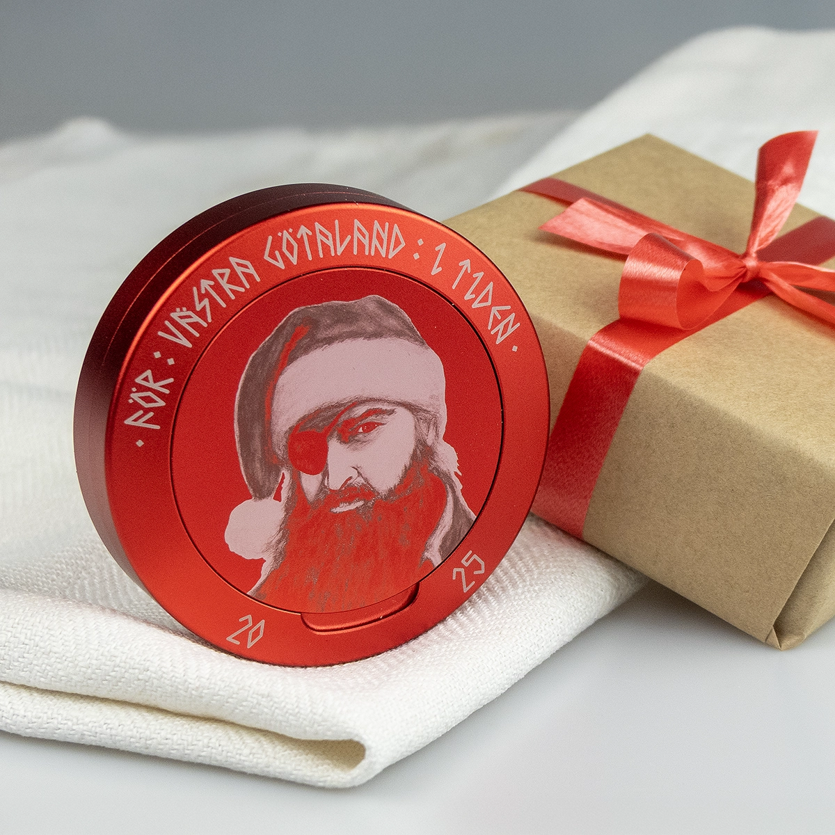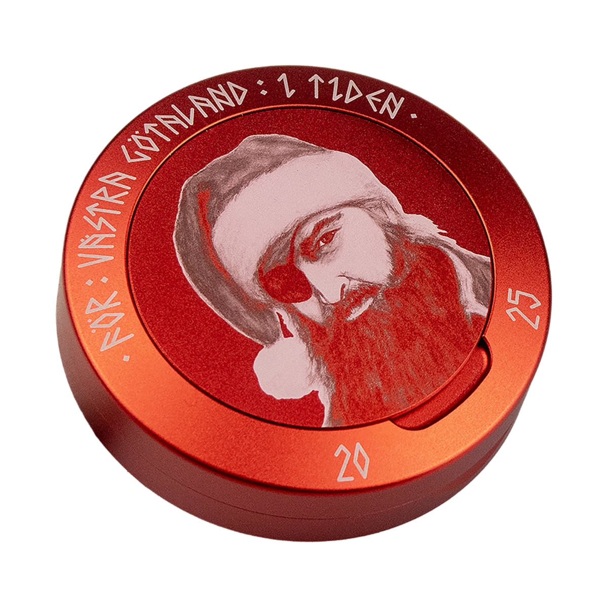Julen kommer med stil och attityd. Den här specialutgåvan av DUS snusdosa pryds av en graverad Bill Granath i full tomteregalia: stor skägg, tomteluva, ögonlapp och misstänksam blick som direkt antyder “har du varit snäll… eller lånat min snus?”