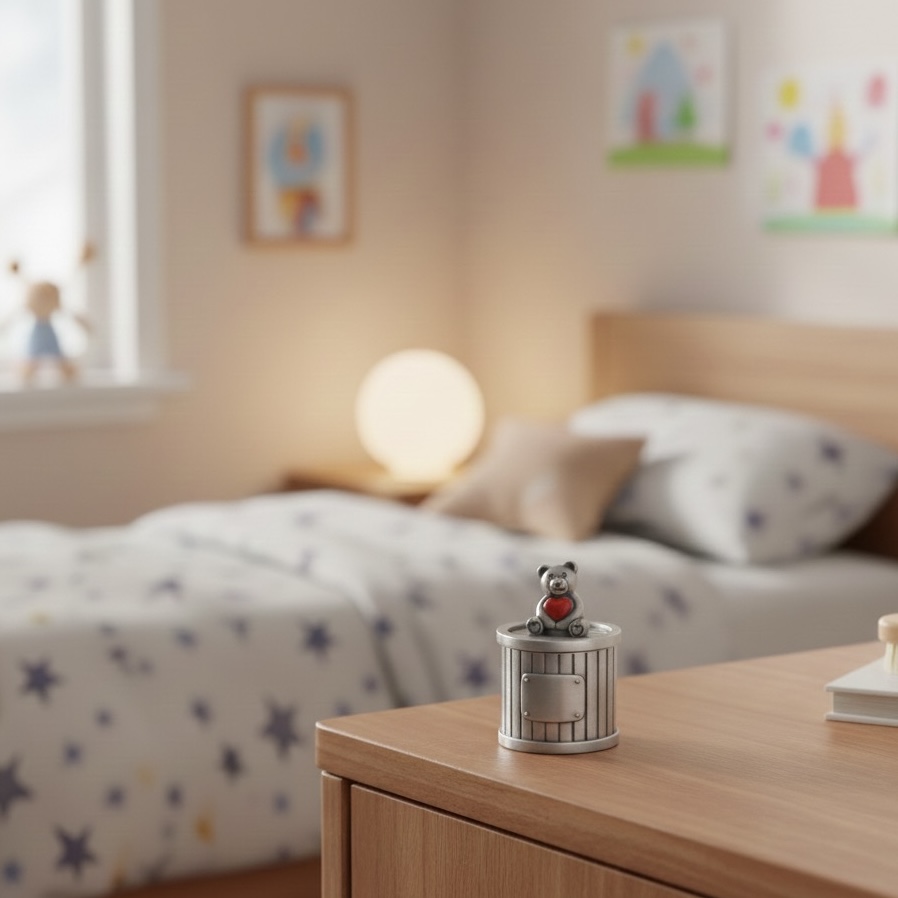 Supersöt Tand & hårlocksdosa "Nalle med rött hjärta" med personlig gravyr.