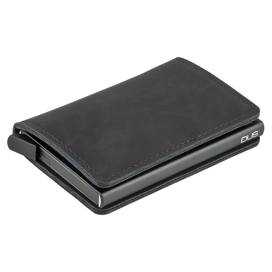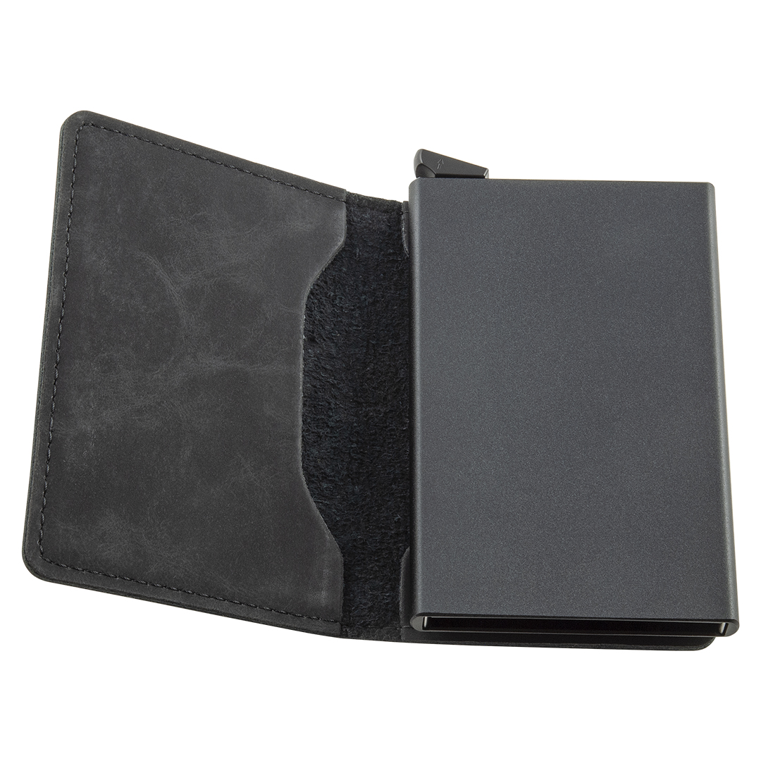 Stilig och praktisk korthållare med PU-fodral. Plats för upp till 6 kort i korthållare + 2 kort och sedlar i fodralet.