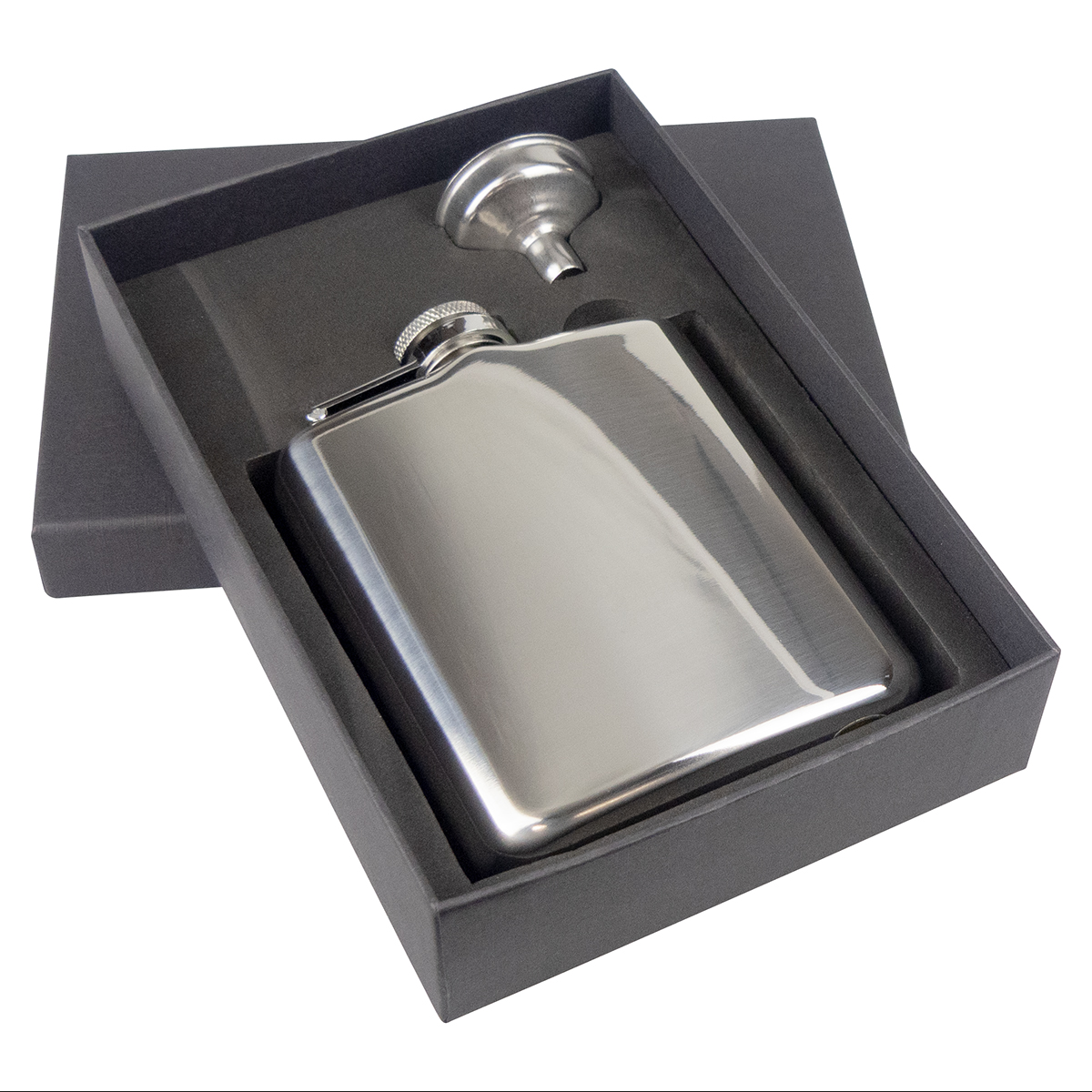 Tillverkad i rostfritt stål, med ett säkert skruvlock som gör att inte en droppe går till spillo (för vi vet ju att det vore en tragedi!). Dessutom levereras den i en snygg presentförpackning med en praktisk tratt – för att undvika spill och pinsamma olyckor.