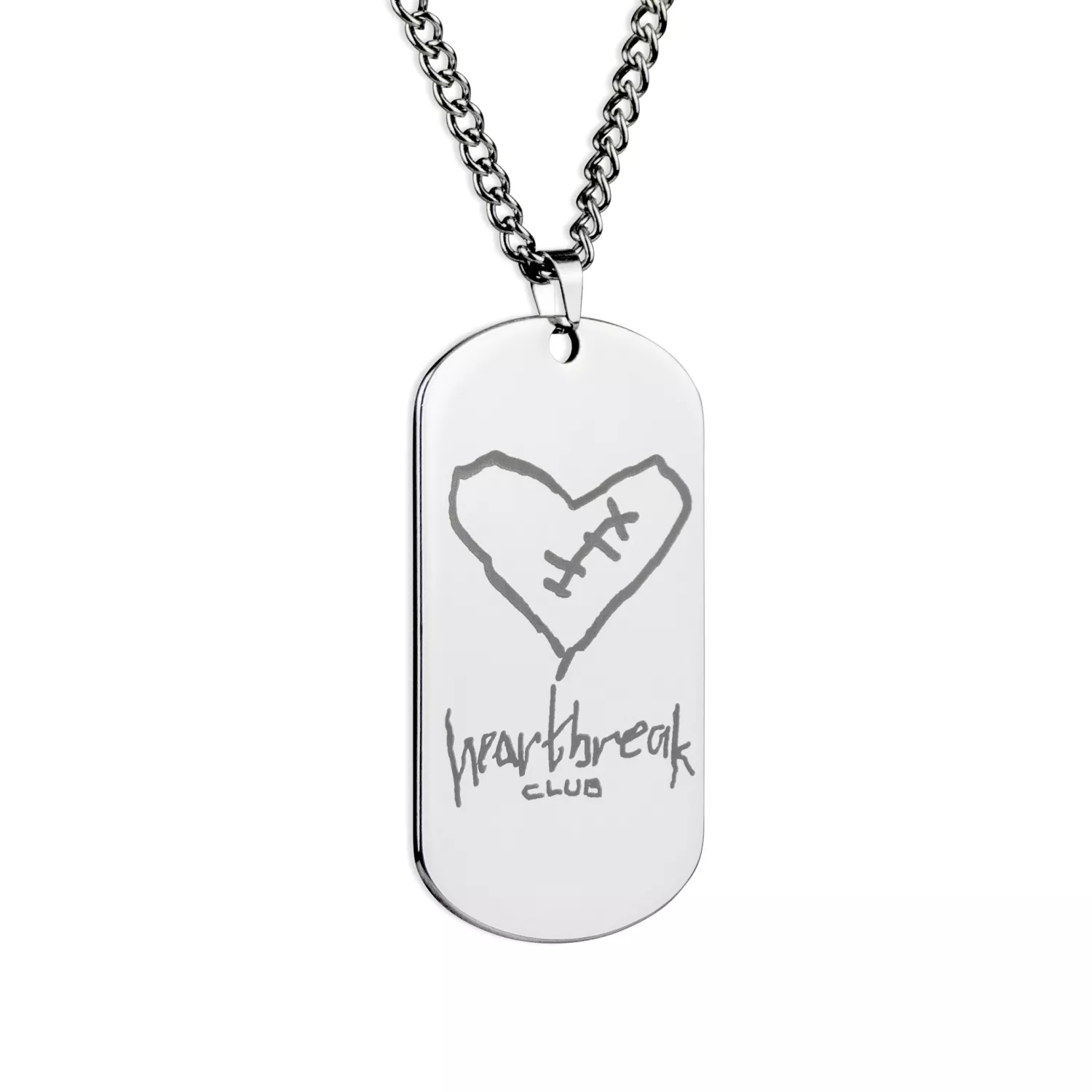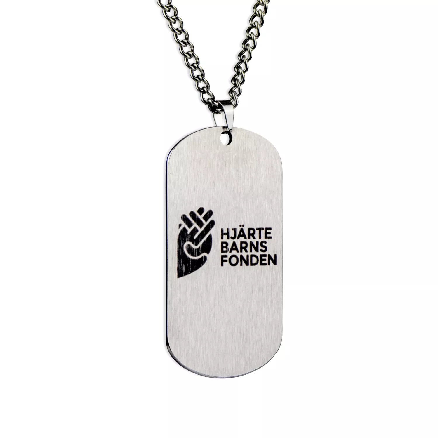 Stöd Hjärtebarnsfonden med detta fina stål-hängsmycke. Ett smycke med tydlig mening och karaktär. Hänget är utformat som en klassisk dog tag i rostfritt stål och pryds av motivet Heartbreak Club: ett handritat hjärta med stygn, som symboliserar sårbarhet, styrka och hopp. Baksidan av hängsmycket har en borstad yta och pryds av Hjärtebarnsfondens märke.