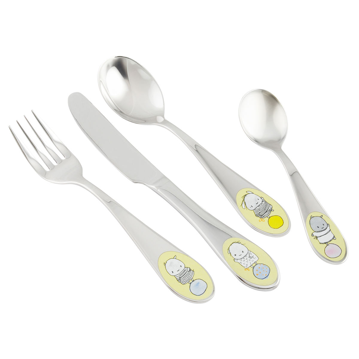 Barnbestick: Förhöj måltidsupplevelsen med detta underbara barnbestick, också designat av Lena Lindahl. Besticken är tillverkade i högkvalitativt 18/10 rostfritt stål och pryds av små figurer på skaften. Levereras i en elegant presentlåda, och kan kompletteras med en personlig namngravyr, vilket gör det till en perfekt present för dop, baby shower eller födelsedag. För längre hållbarhet rekommenderas handdisk.