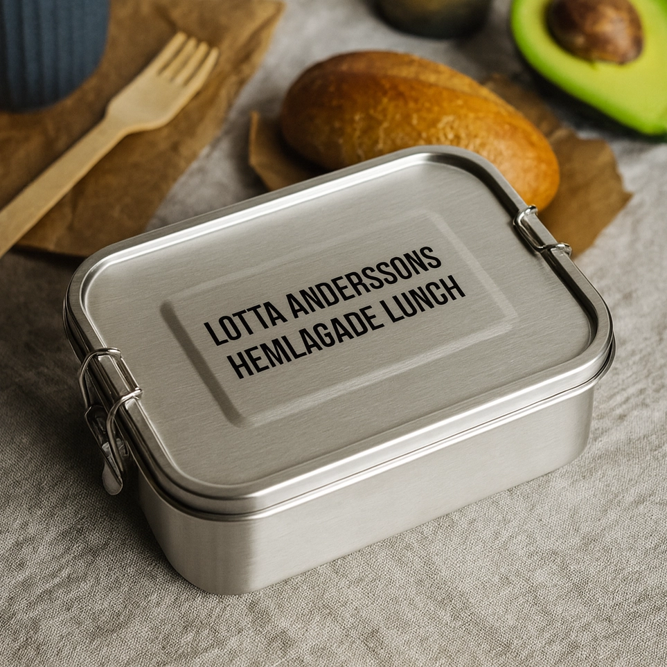 Men vänta, det blir ännu bättre! Den här lådan är inte bara byggd för att rymma mer än en vanlig portion mat, den är också helt personlig. Glöm tråkiga och anonyma matlådor! Vi erbjuder en gravyr som gör lådan unik och sätter en touch av "du" på den. Och vet du vad som är ännu bättre? Gravyren kostar inget extra! Det är som att få en personlig kärlekshälsning från matlådan själv varje gång du packar din lunch.