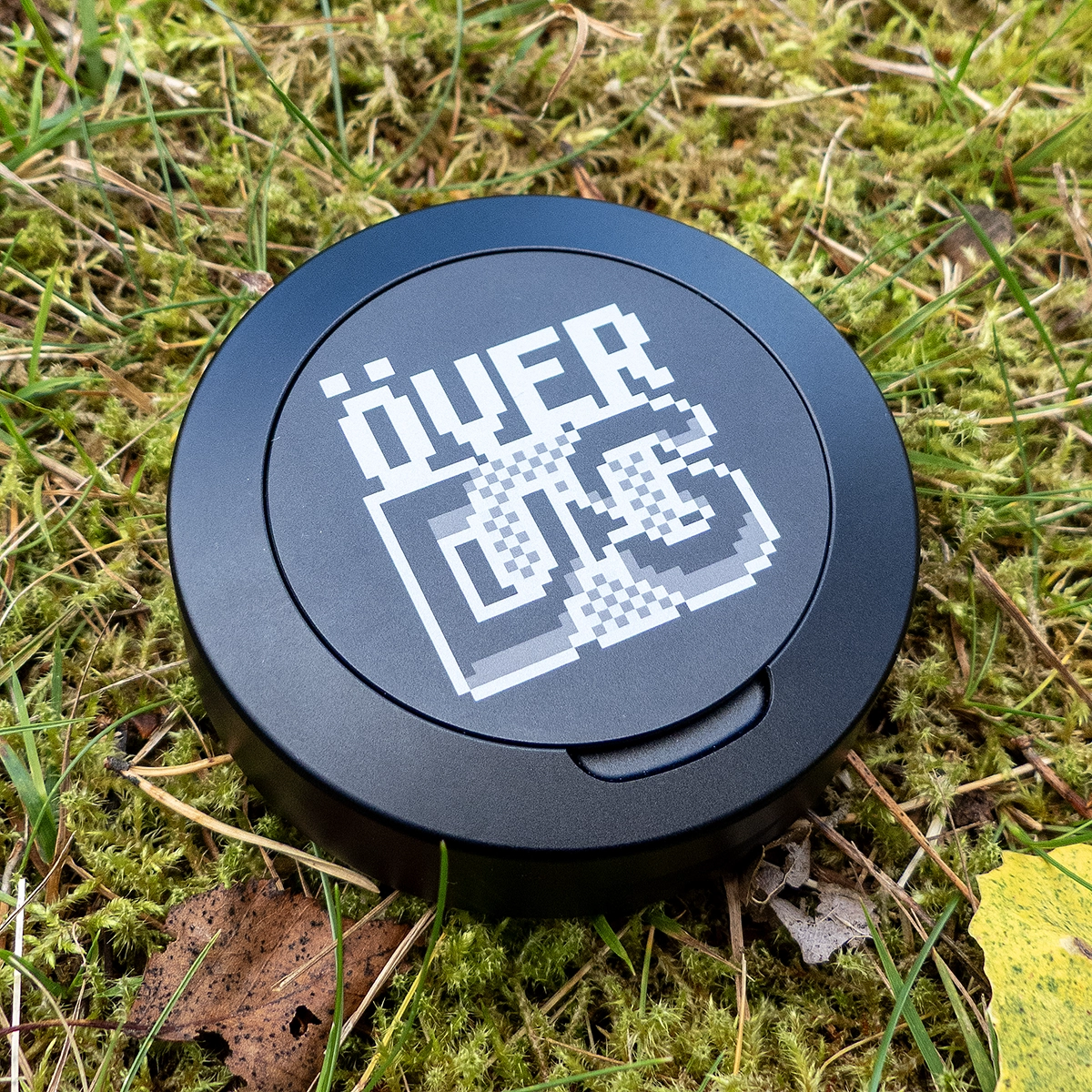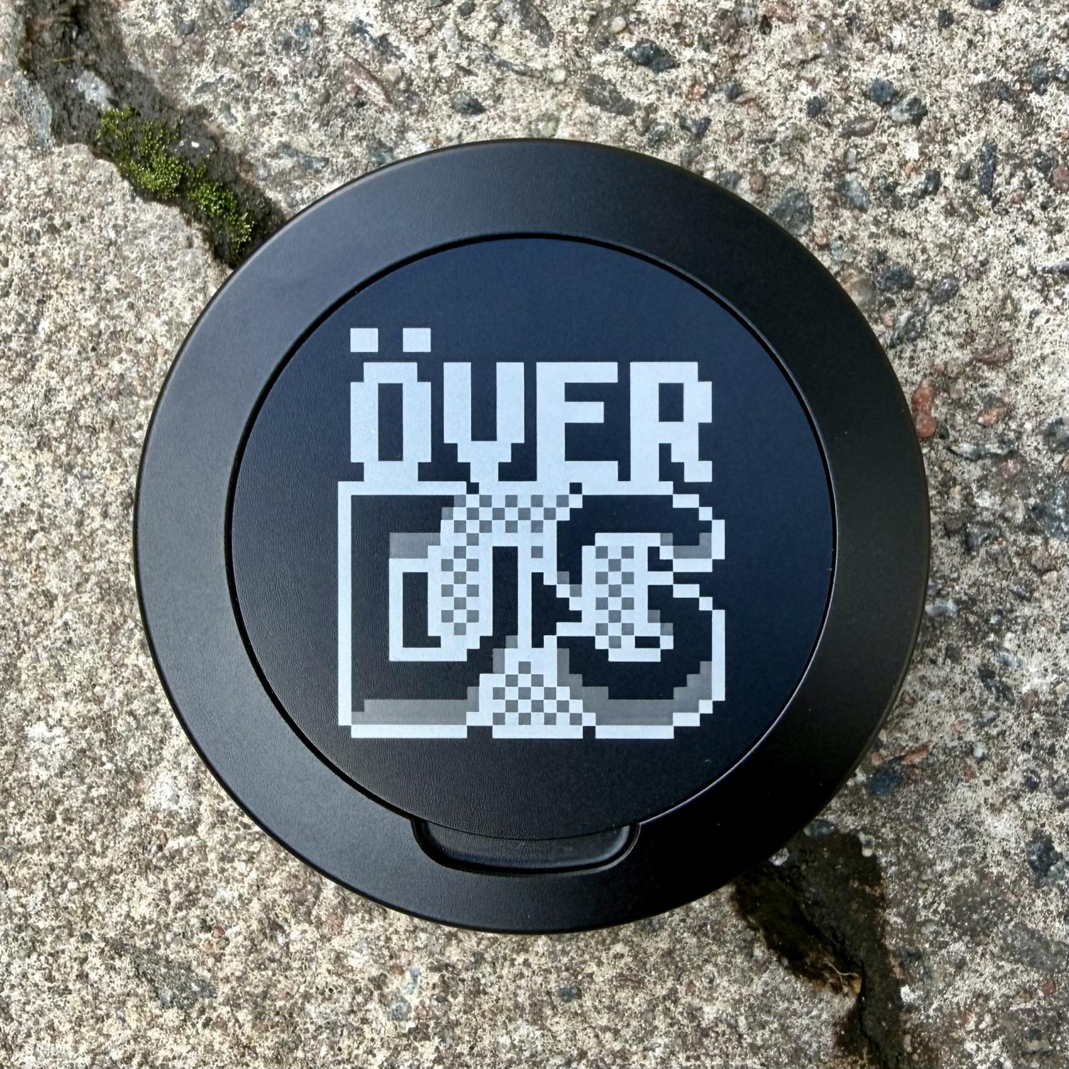 installerade sig i ditt nikotinberoende. Designen är en överstyrd homage till den klassiska DOS-loggan, nu upp-patchad
