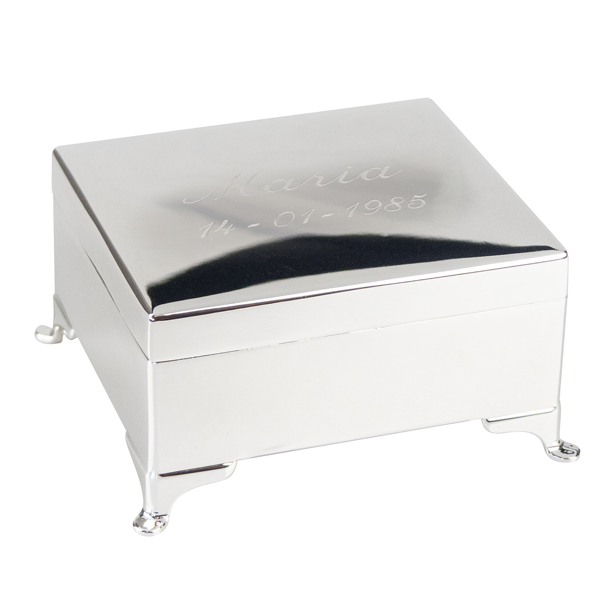 Litet silverpläterat skrin – personligt minnesskrin med gravyr