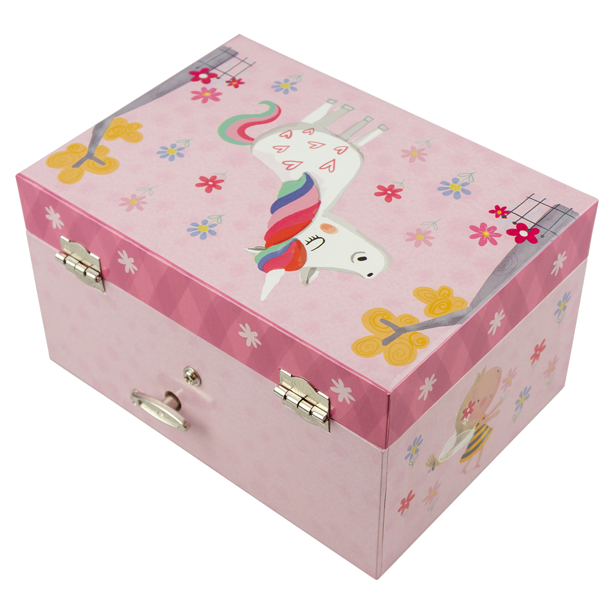 Vackert och enkelt skrin med speldosa och gullig enhörning som snurrar då speldosan spelar.