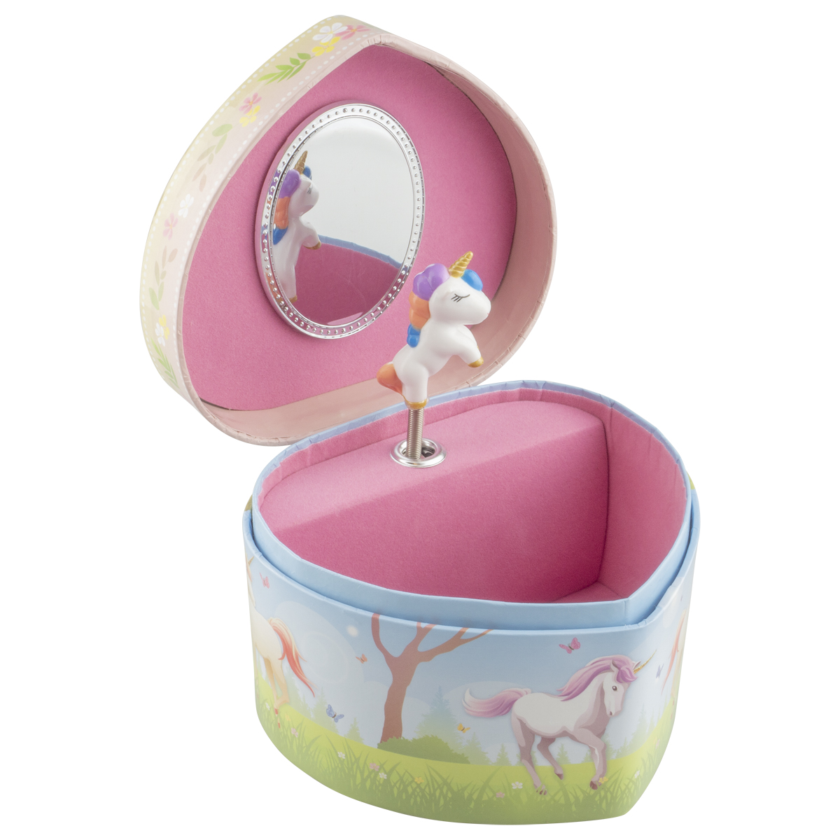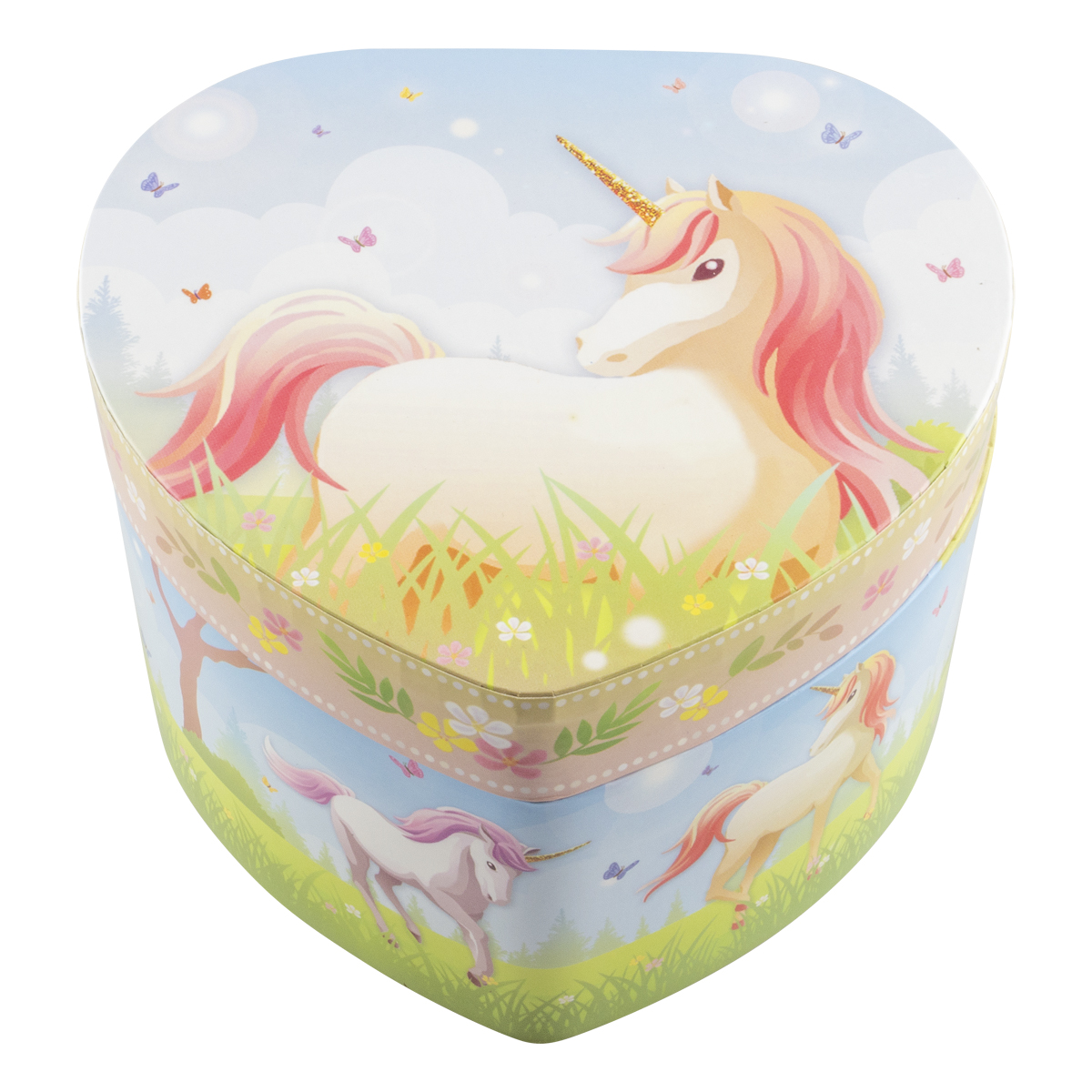 Sött smyckeskrin med enhörningsmotiv och speldosa.