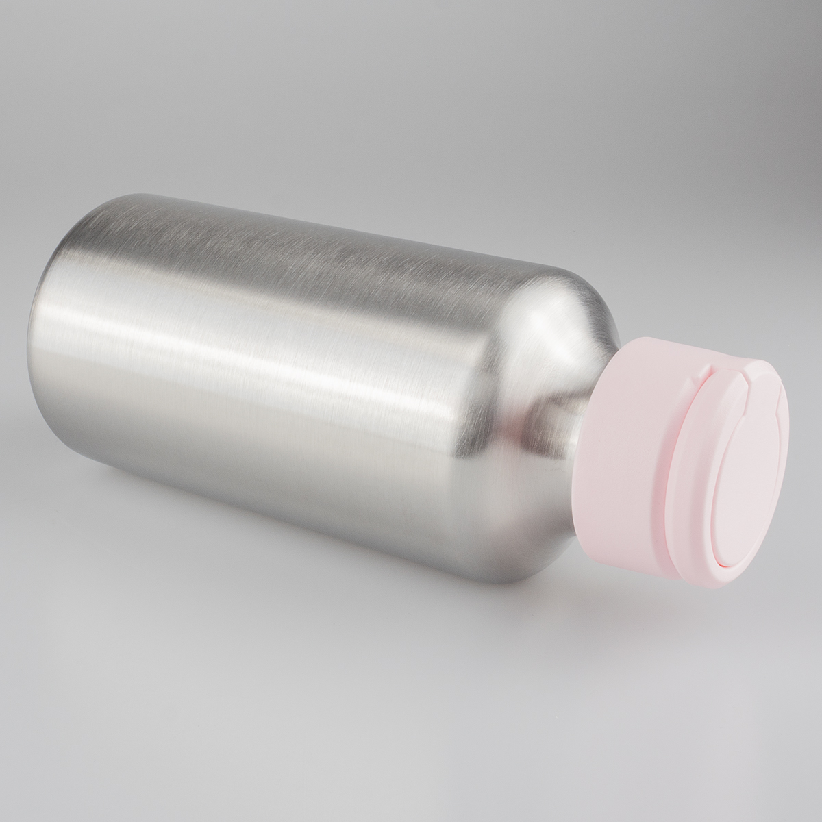 Vattenflaska i rostfritt stål. 0,5l rosa kork.
